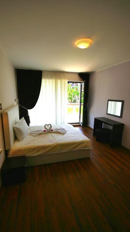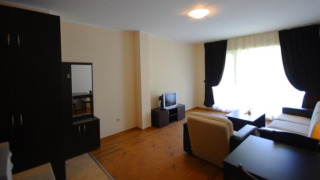 - апартамент - 3 възрастни + 1 дете до 11.99 год. Апартаментите (70 - 80 кв.м.) се състоят се от 2 стаи - спалня с двойно легло и хол с двоен разтегателен диван и разтегателен фотьойл (допълнително легло), кухненски бокс, кът за хранене с маса и столове, хладилник, керамични котлони, аспиратор, микровълнова фурна, мивка, телевизор;