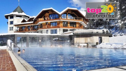 Вътрешен минерален басейн с гледка към планината и Външно джакузи